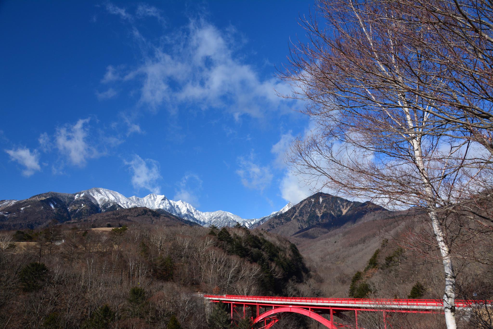 赤い橋と八ヶ岳