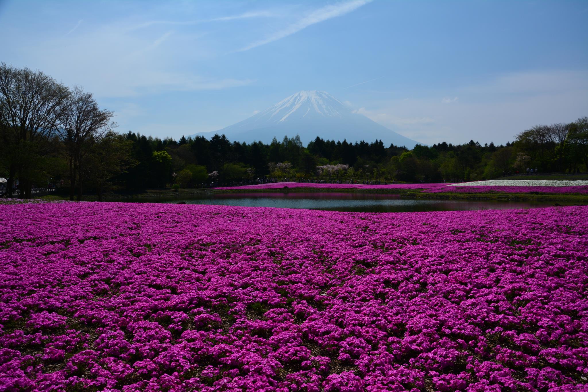 満開の芝桜に富士山、美しい光景です。