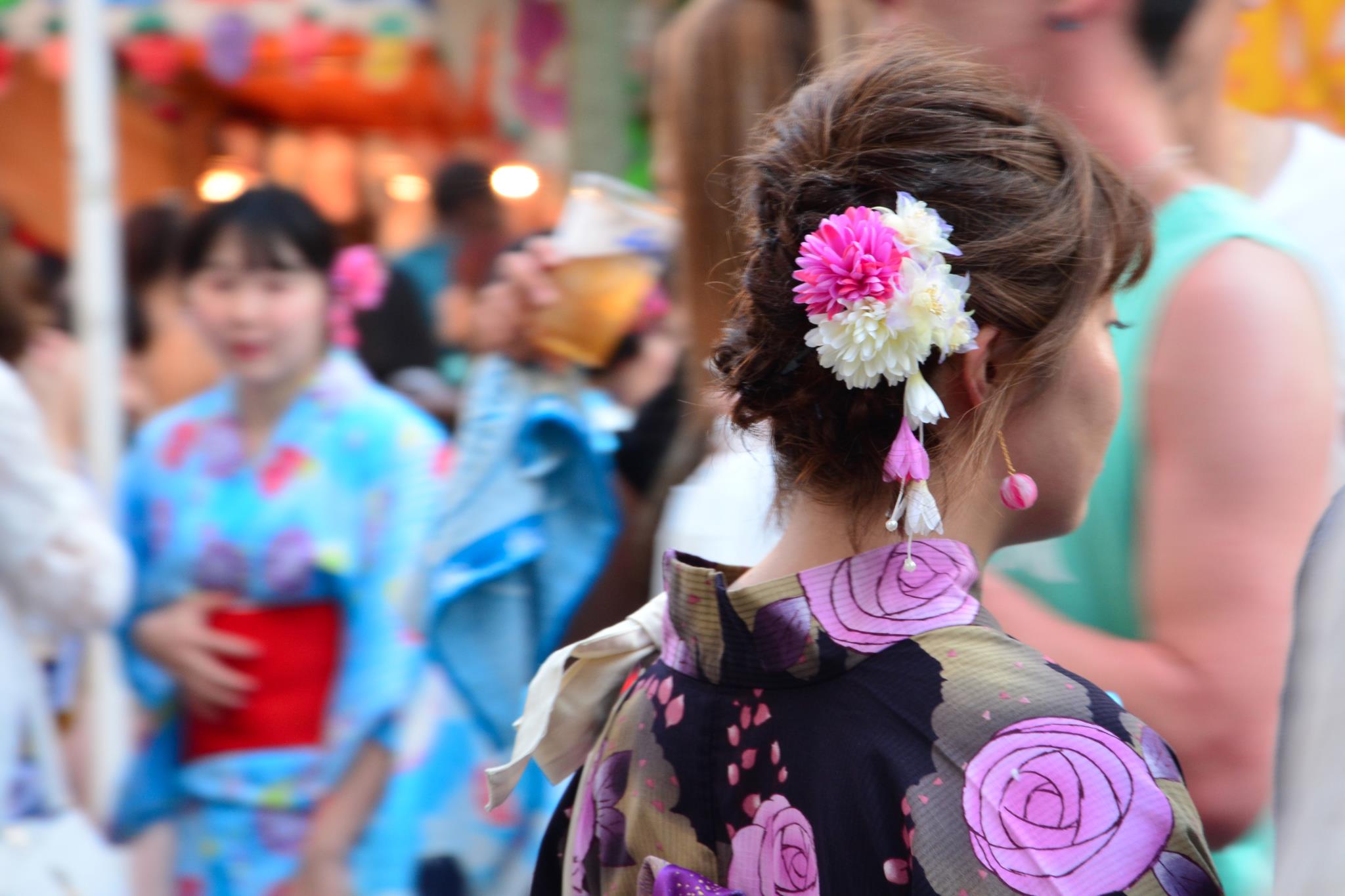 藤色の髪飾りを付けている人が多いように思いました。今年の流行り?