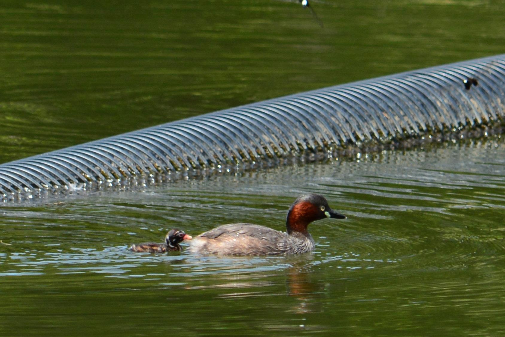 蓮の花とカイツブリ