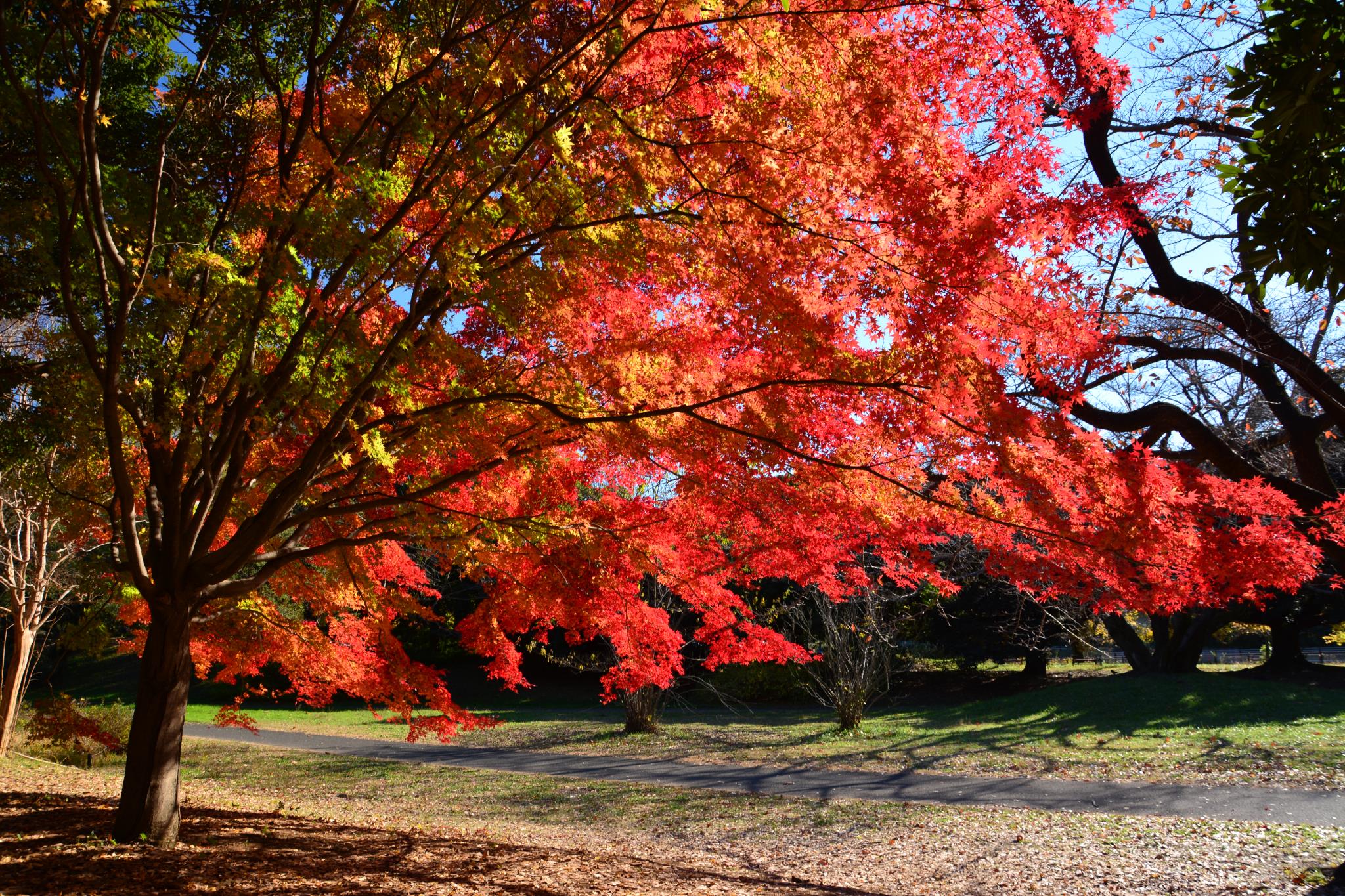 昭和公園の紅葉もこのわんぱく広場が一番遅いみたいですね とてもきれいなもみじでしたね