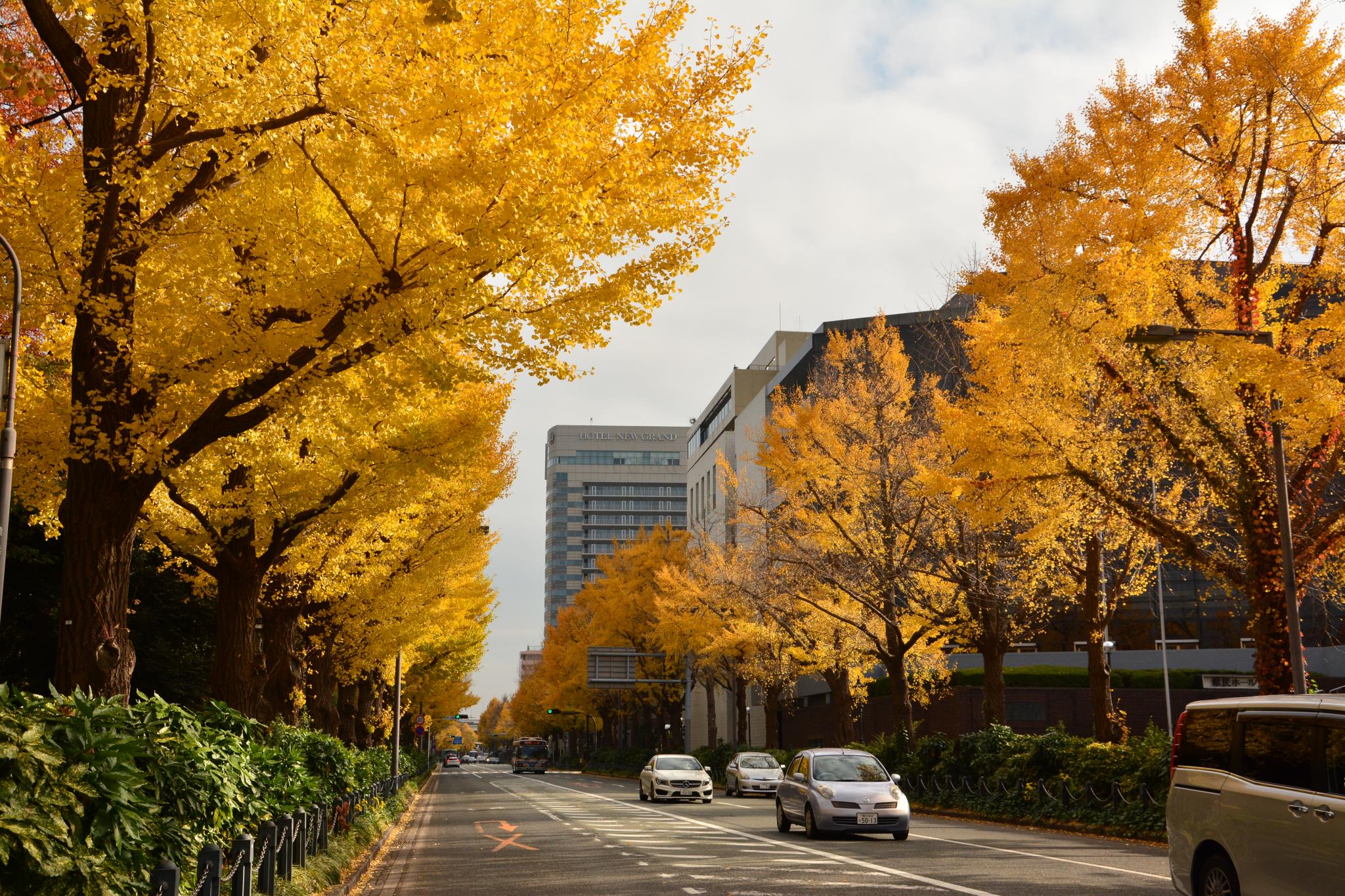 木々に陽が入って輝いていますね。車道や走る車に落ちる影がいいですね。