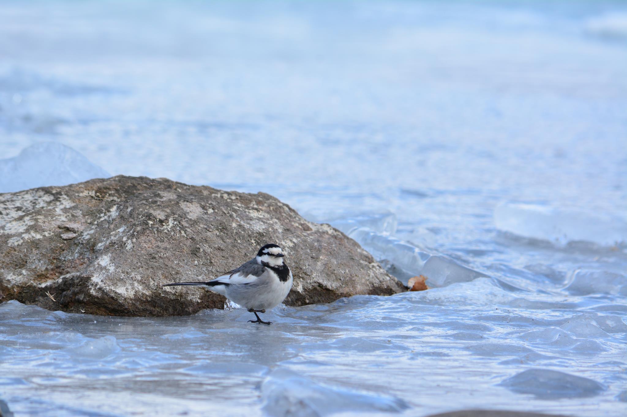 来客がありましたか。一本足打法で構えていますね。(笑)ハクセキレイですね。小走りで走るのがかわいい鳥ですが、氷上はやっぱりスケート靴を履くんでしょうか?オリンピックにも出る?