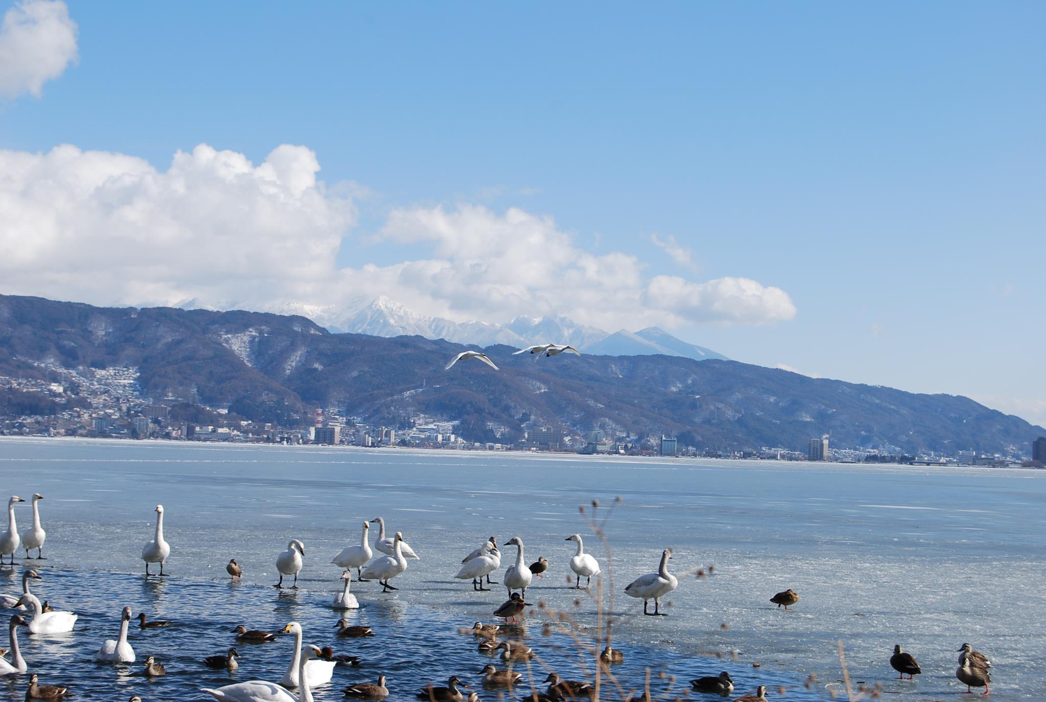 鴨さん達は冷たい水に潜ってエサを探していましたよ。