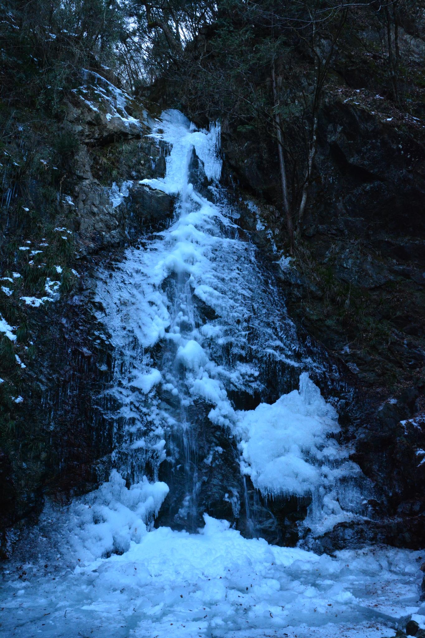 滝つぼには雪が積もっていますね 道路は大丈夫でしたか