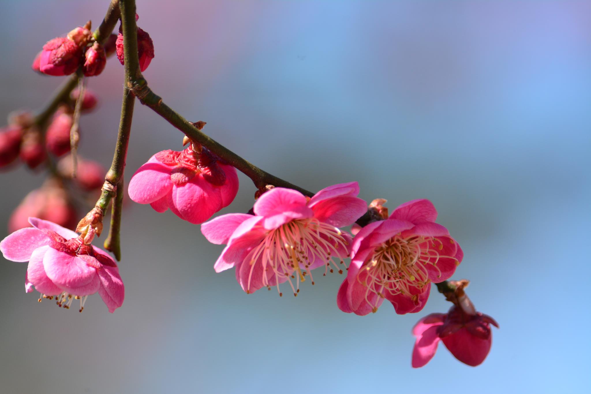 春うららの青空に紅梅がよく似合います。