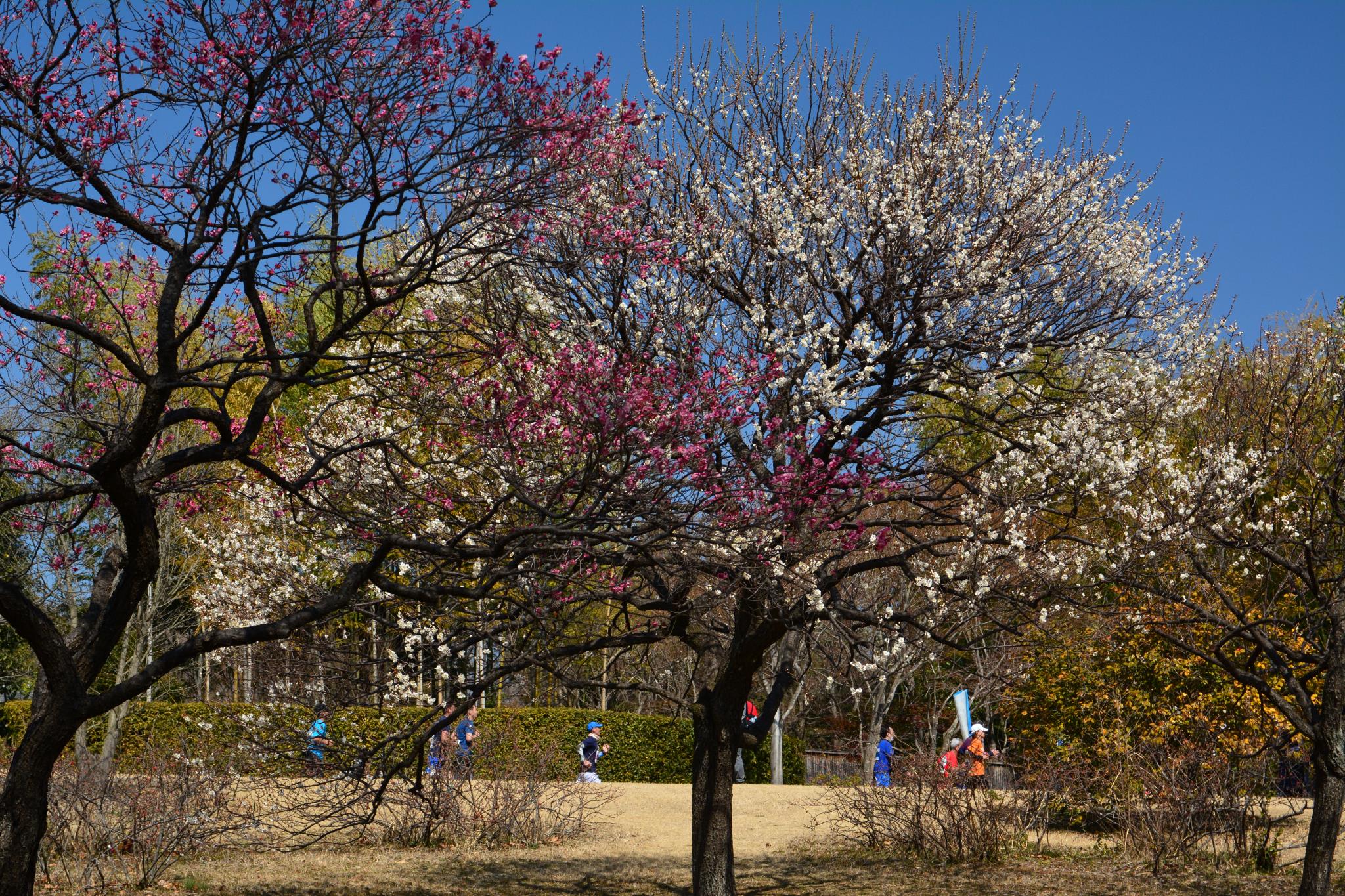 ゴールに向かう市民ランナーと梅