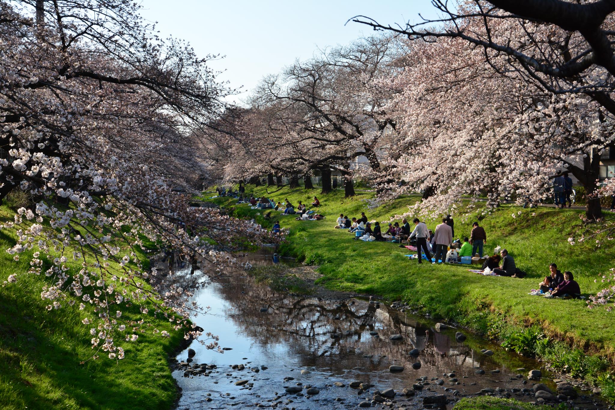 楽しそうなお花見風景です。綺麗になった根川に映り込んださくらなみきがイイですね。
