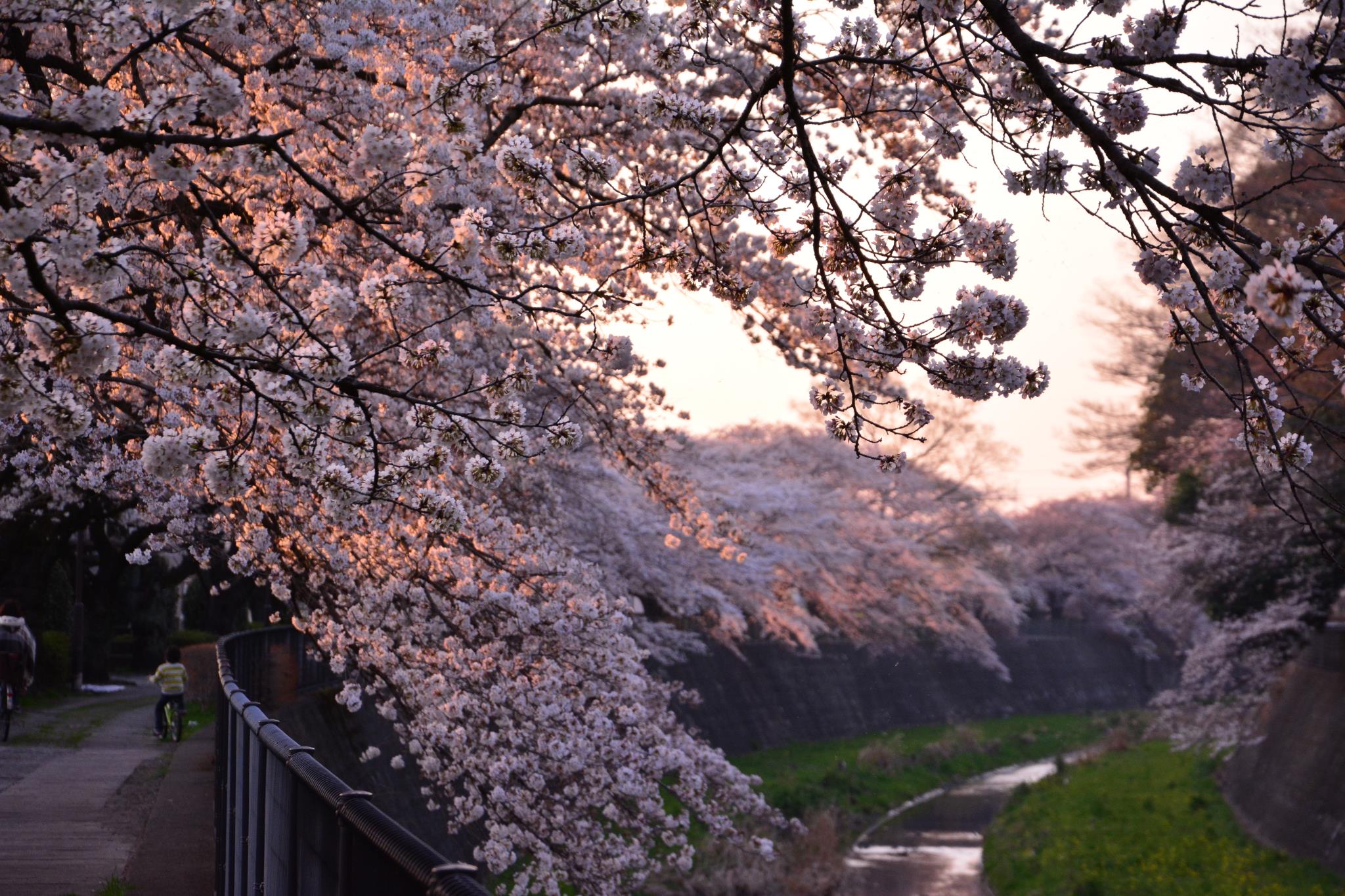 夕日が射しこむとソメイヨシノのピンクが一層魅力的になりますね。