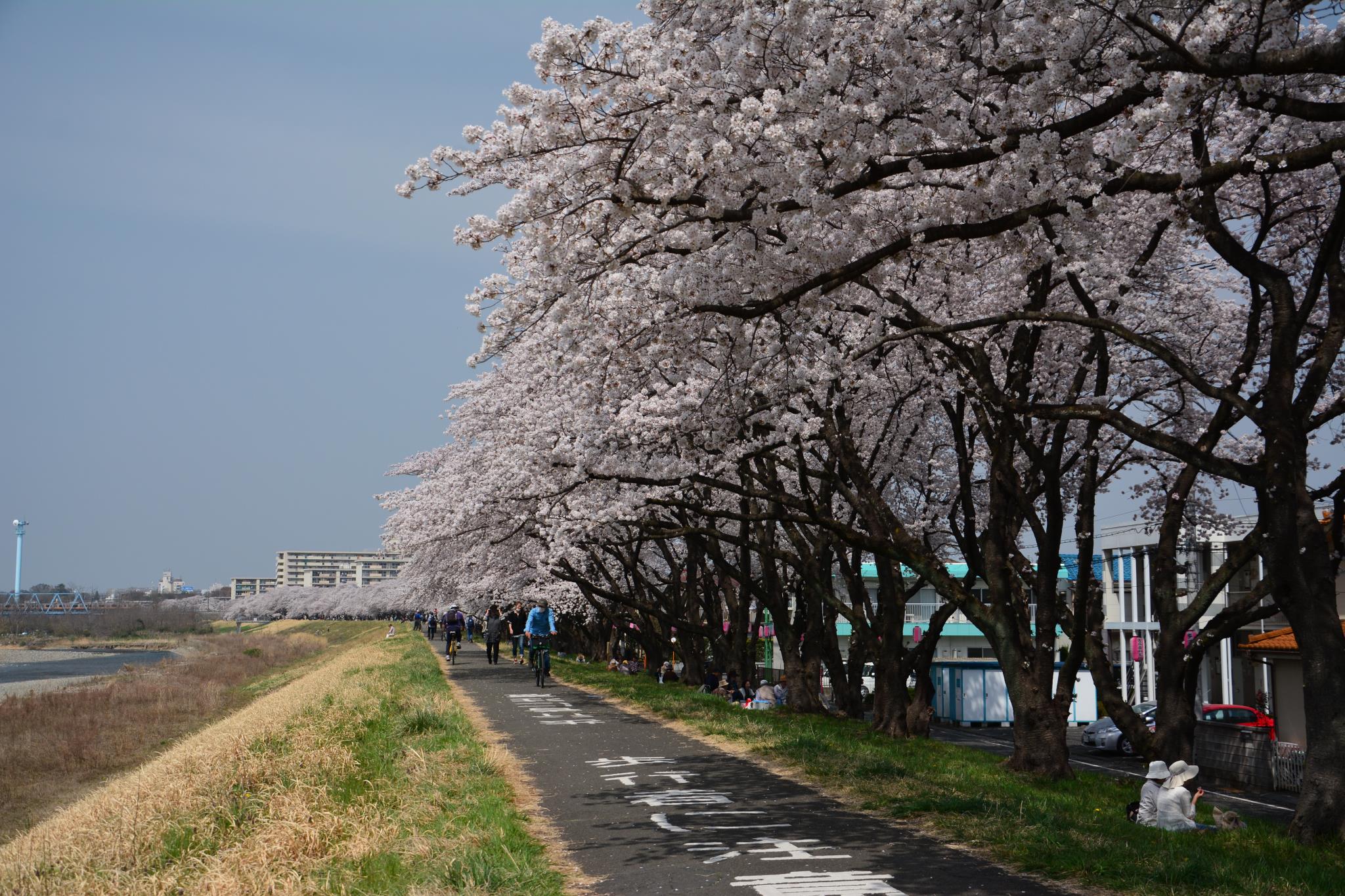 睦橋から永田橋まで約2.5㎞の桜堤。