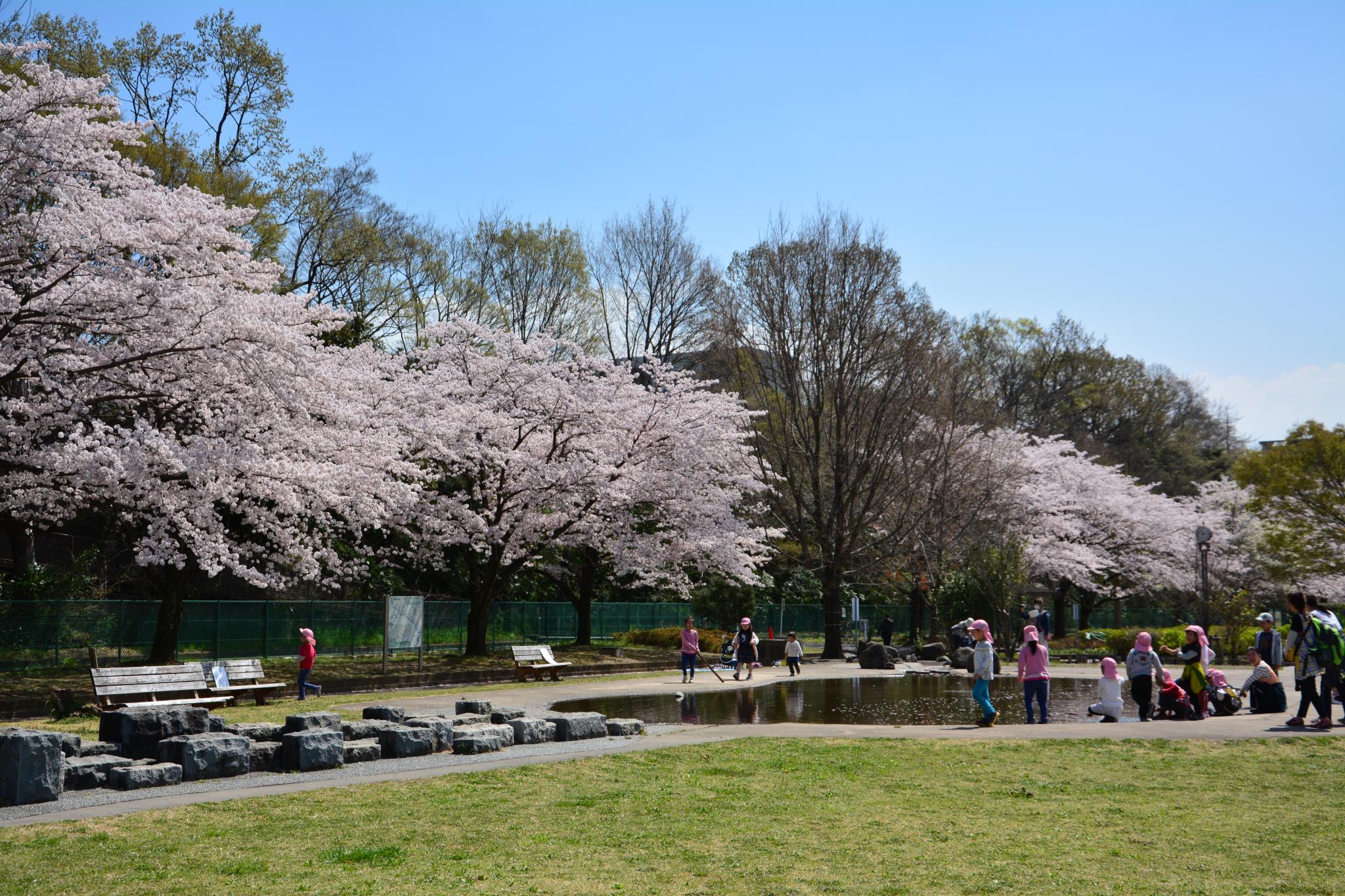 園児たちも楽しそうですね。花見より水遊びの方が楽しいなあ。(笑)
