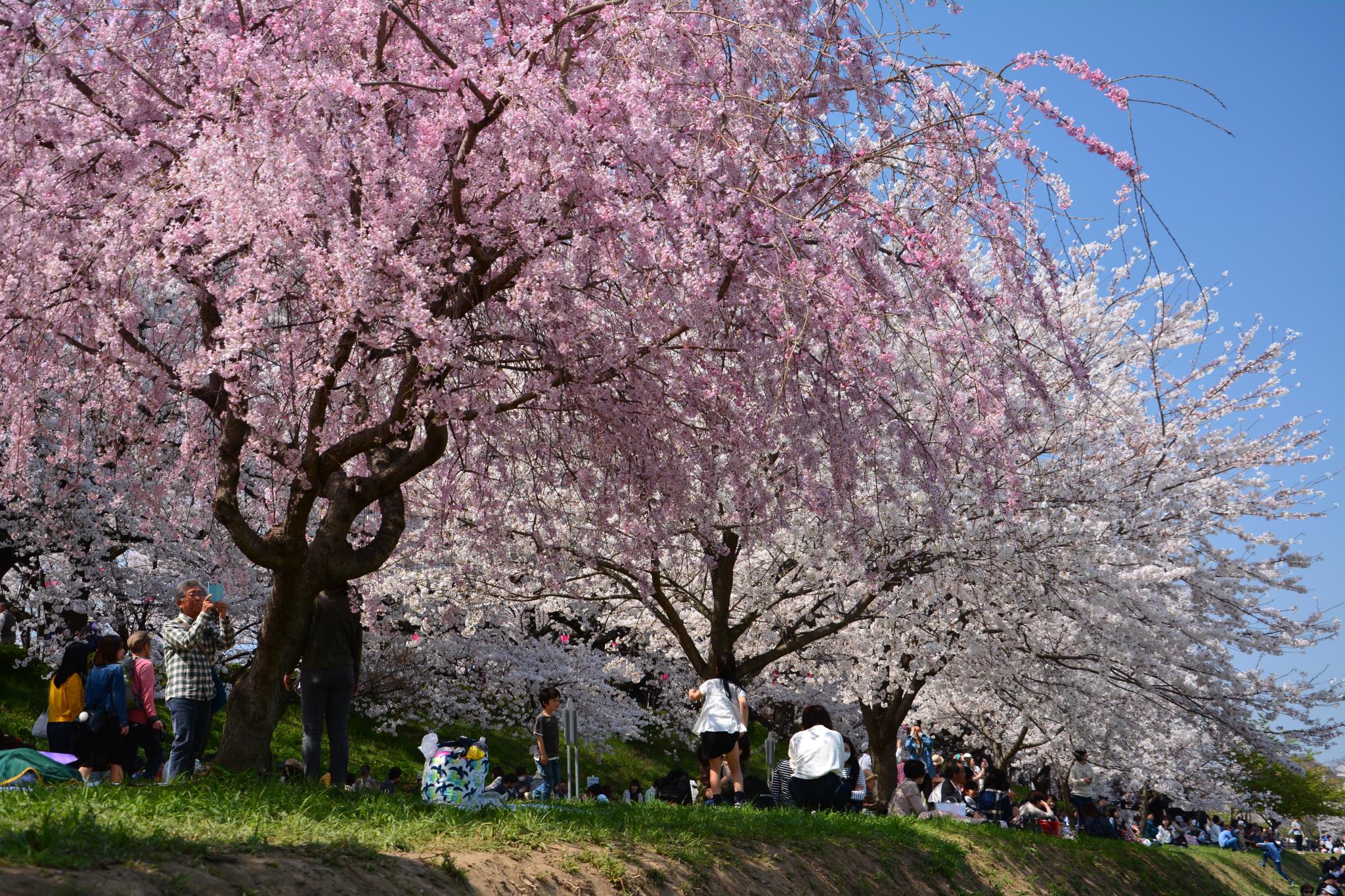 この枝垂れ桜の前は人気でした。