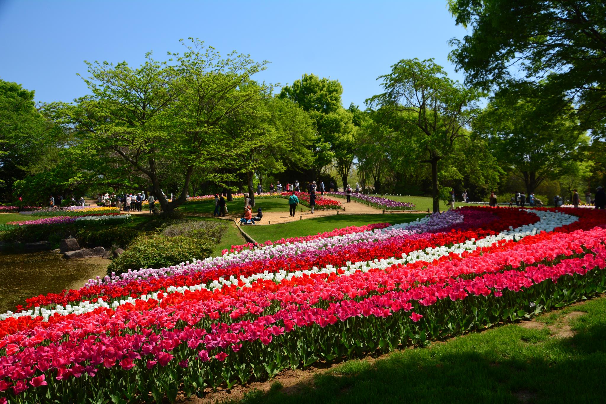 この日はお客も少ないみたいでしたので、良い写真がたくさん撮れたのでしょうね(笑) 青空と赤のチューリップがきれいですね