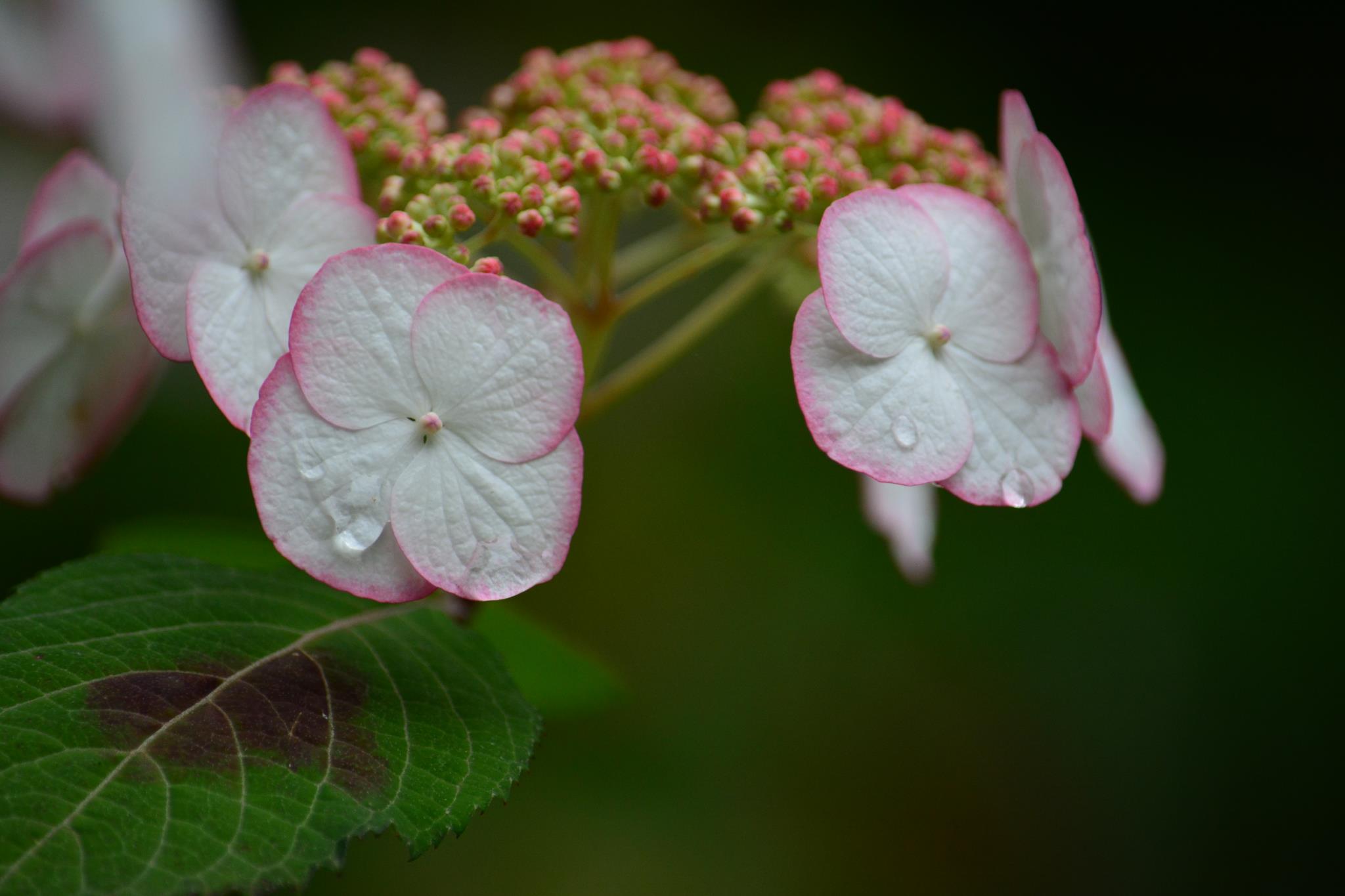 ちょっと変わったガクアジサイですね。ピンクの縁取りが可愛いです。