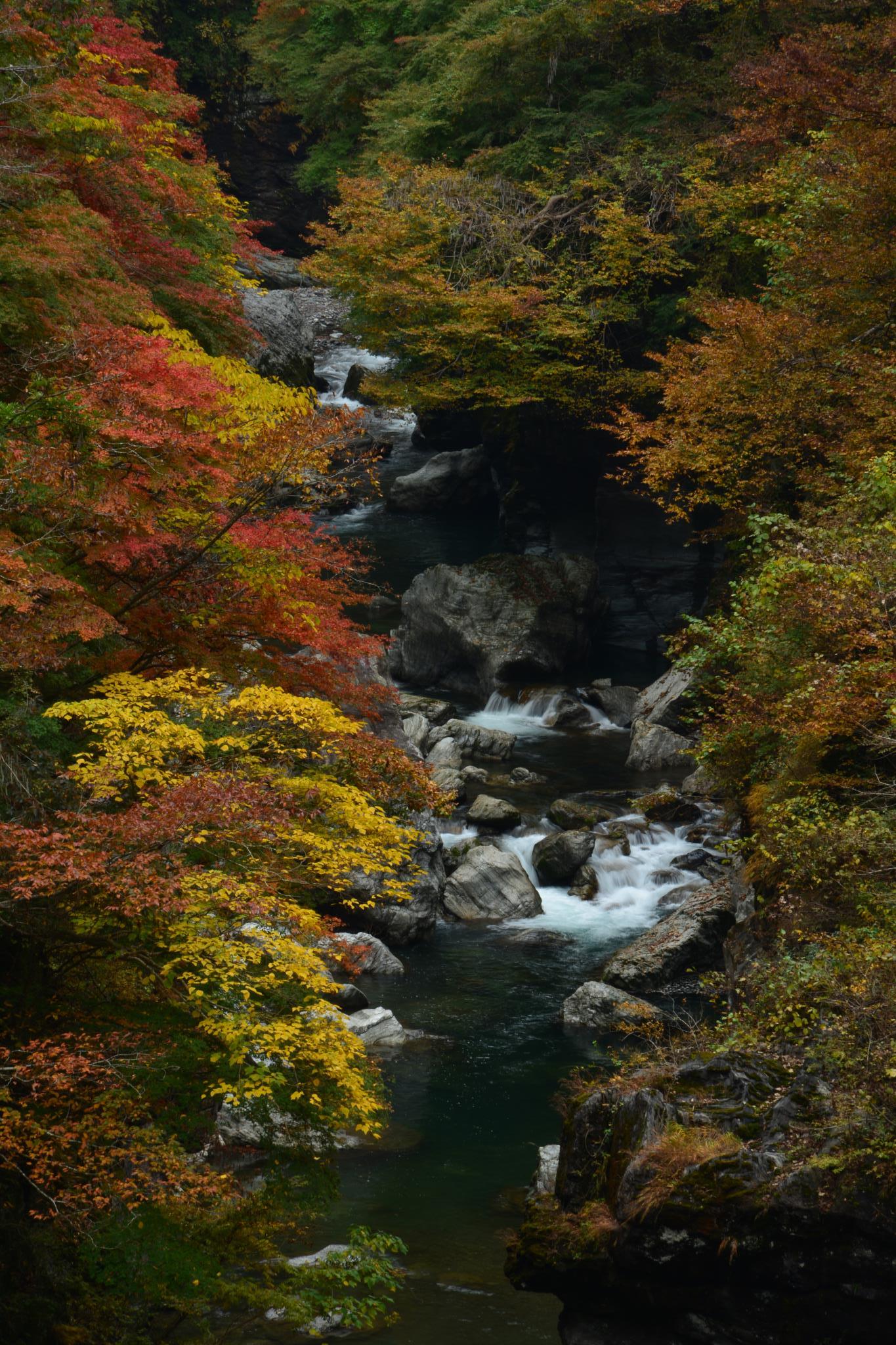 やはり縦構図渓流を左から右へと入れたのがうまいですね。三峰神社は移動に遠いし、おそらく標高が高いので紅葉は残っていないと判断しましたよ。