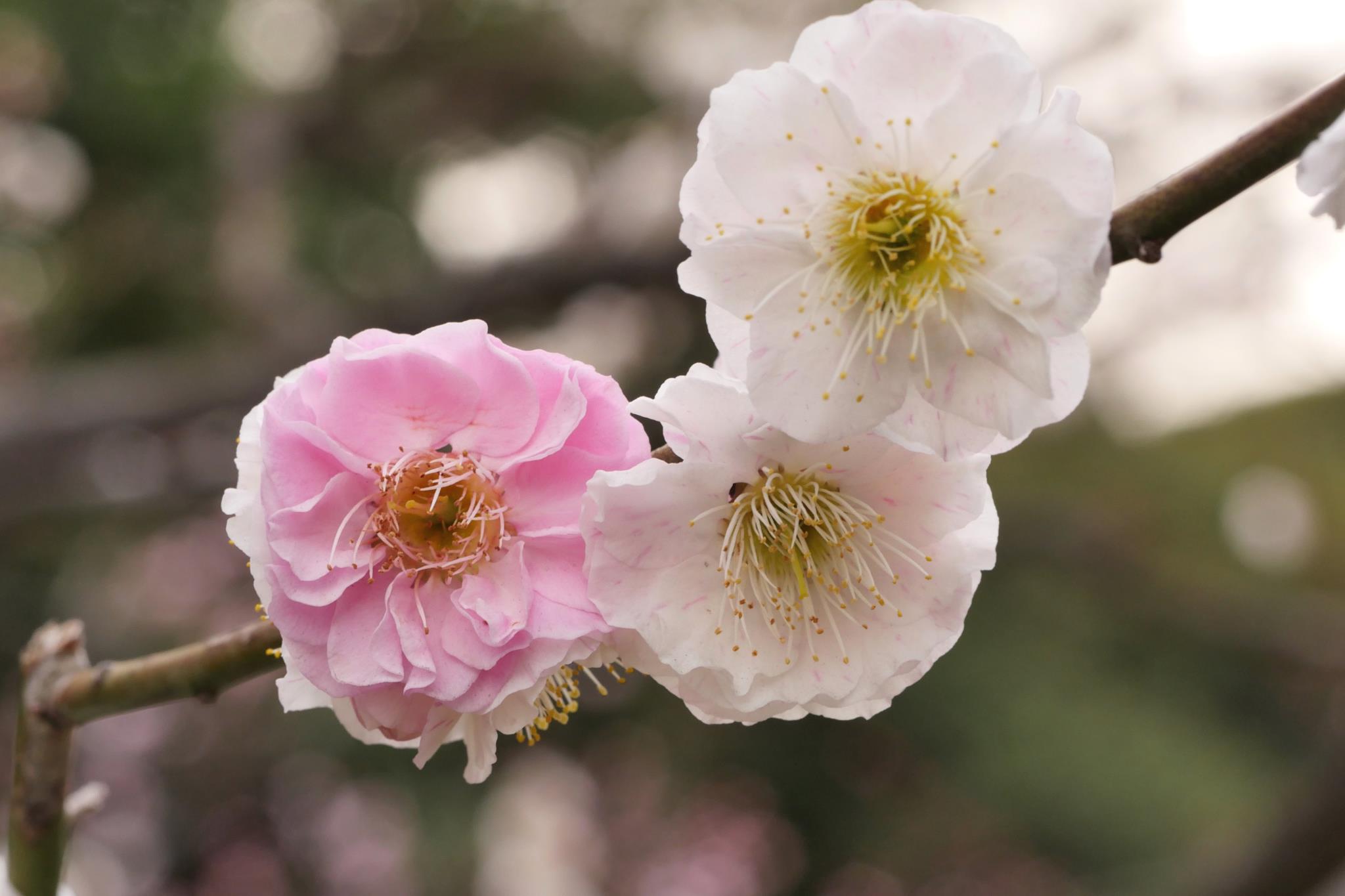 紅白で咲いている梅を良く見つけましたね。