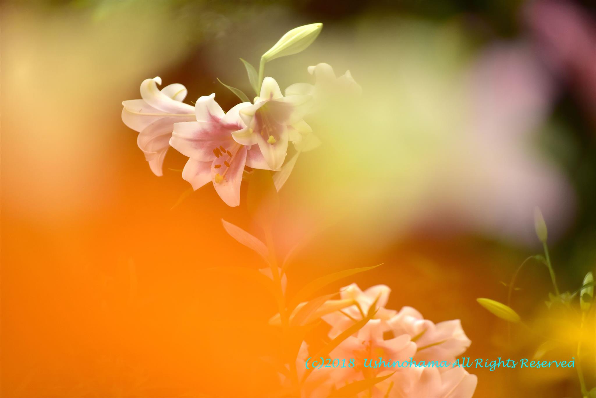 手前の花に近づいて思い切り前ボケにしました。
