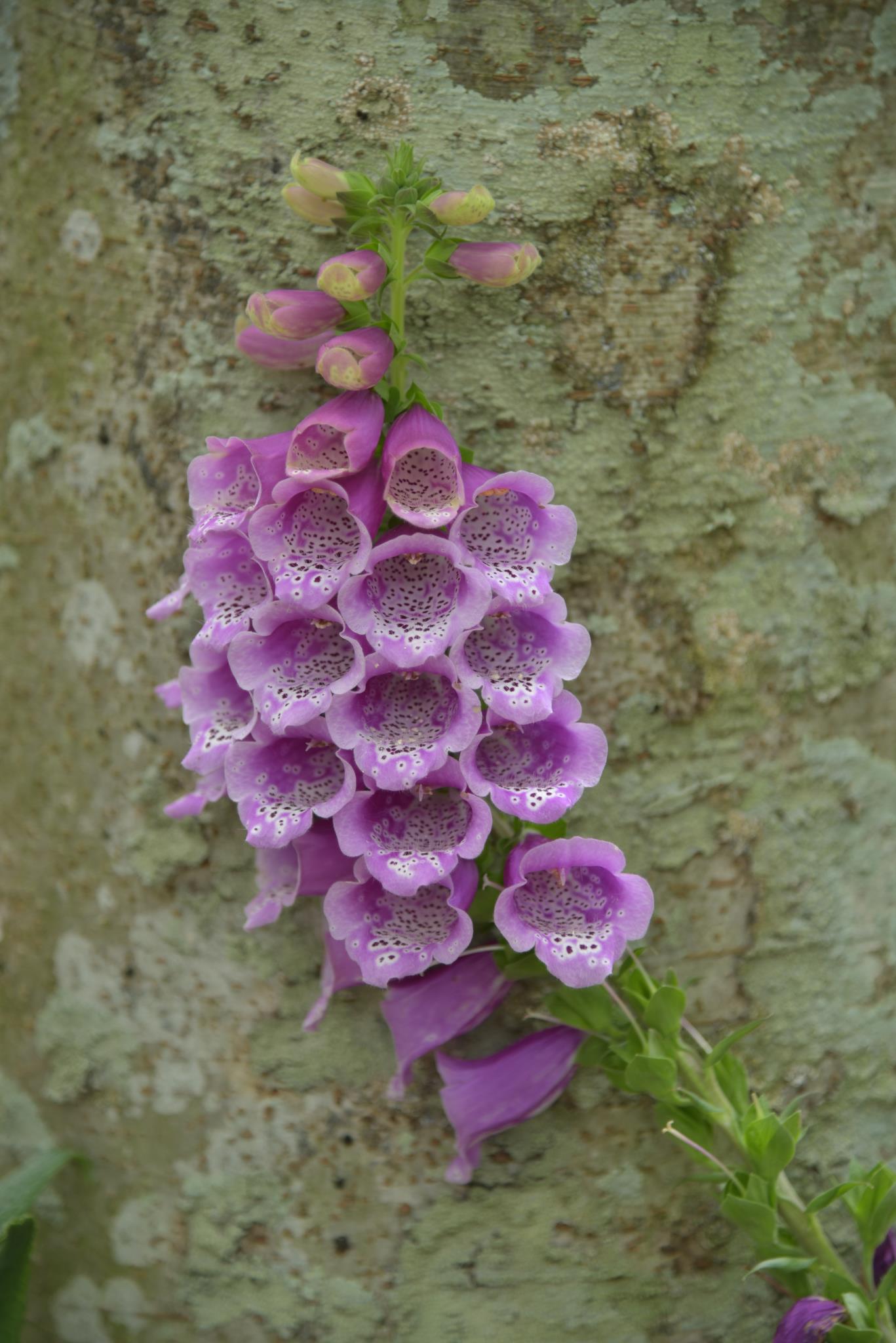 ムラサキ色の綺麗な花ですが、何で木の幹にへばりつくように咲いているのでしょうかね。