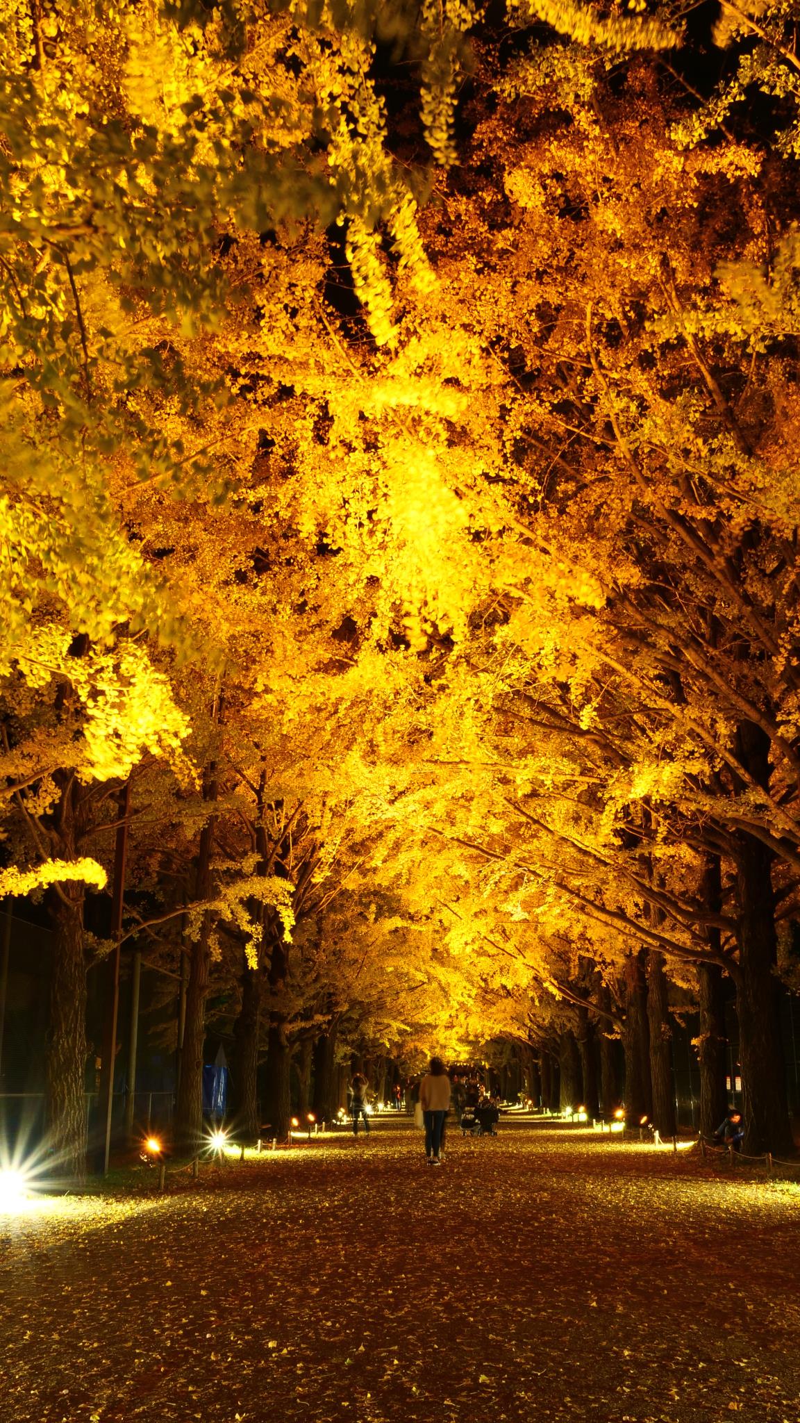 かたらいのイチョウ並木のライトアップは、今年からの新企画でした。