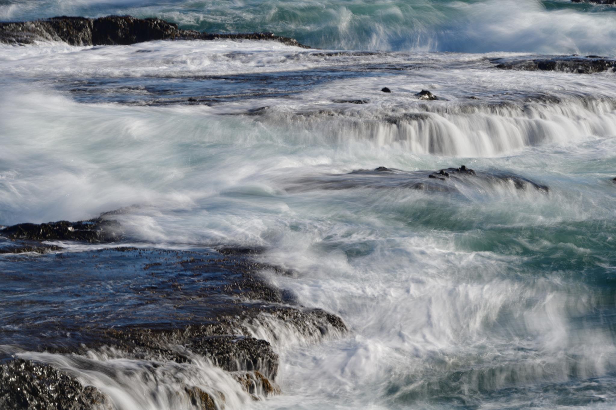 岩礁を乗り越えた波が下るタイミングでシャッターを切ってます。